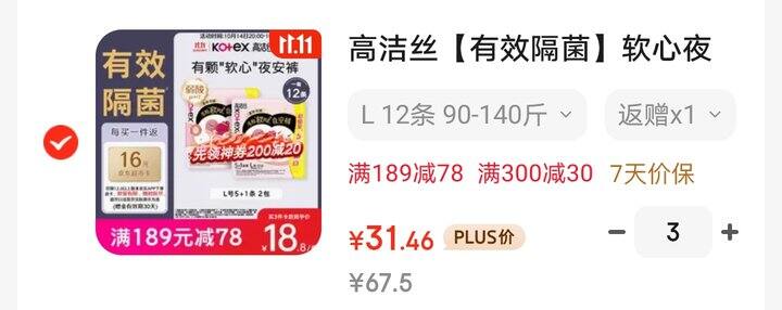 拍3份,每份返16块钱超市卡。一包12条才15.46,刚需可入!