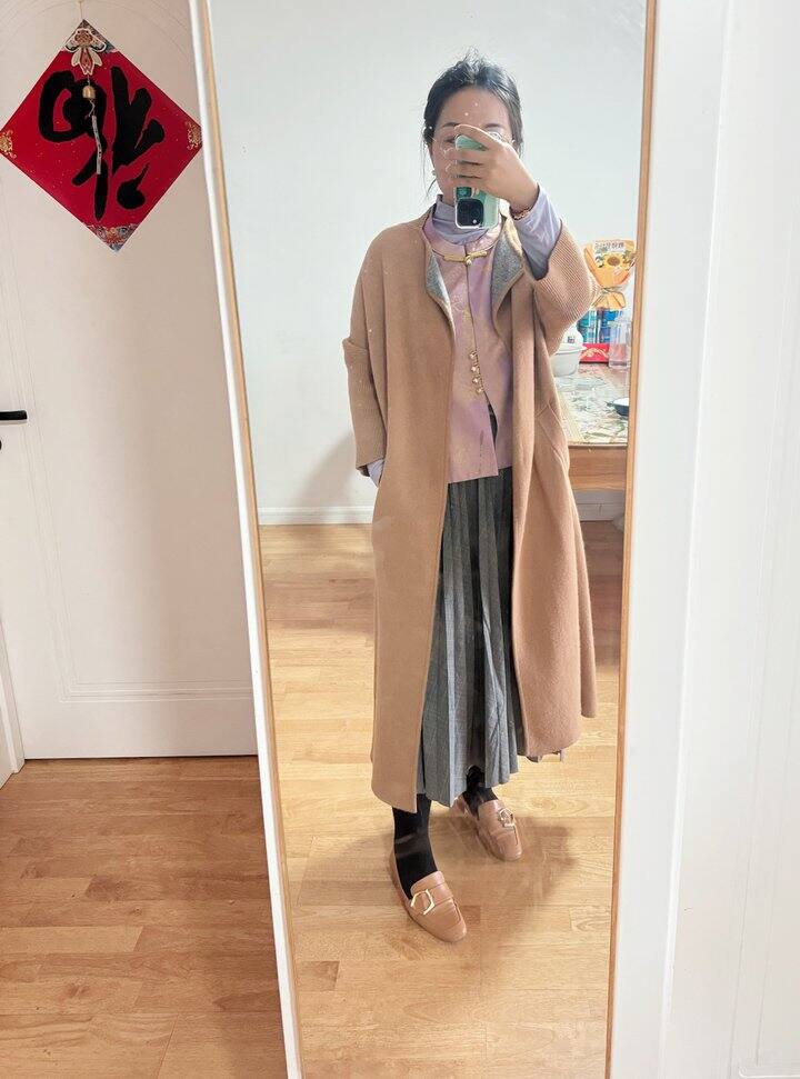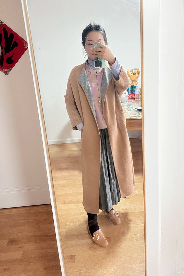 大衣也是,我已经忘记了有这条羊毛驼绒毛线大衣……