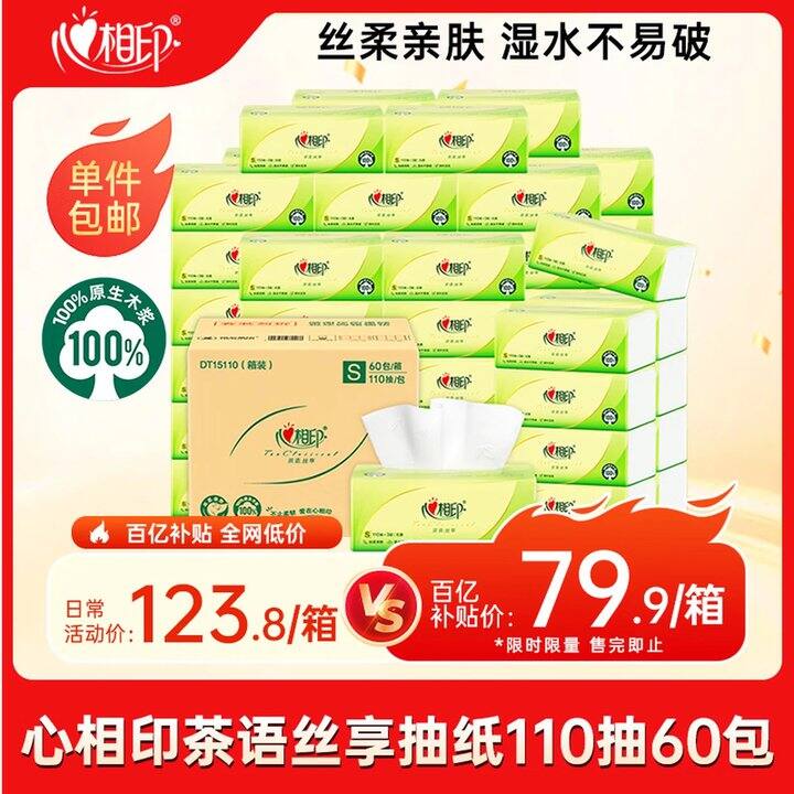 心相印抽纸 茶语丝享3层110抽*60包S码