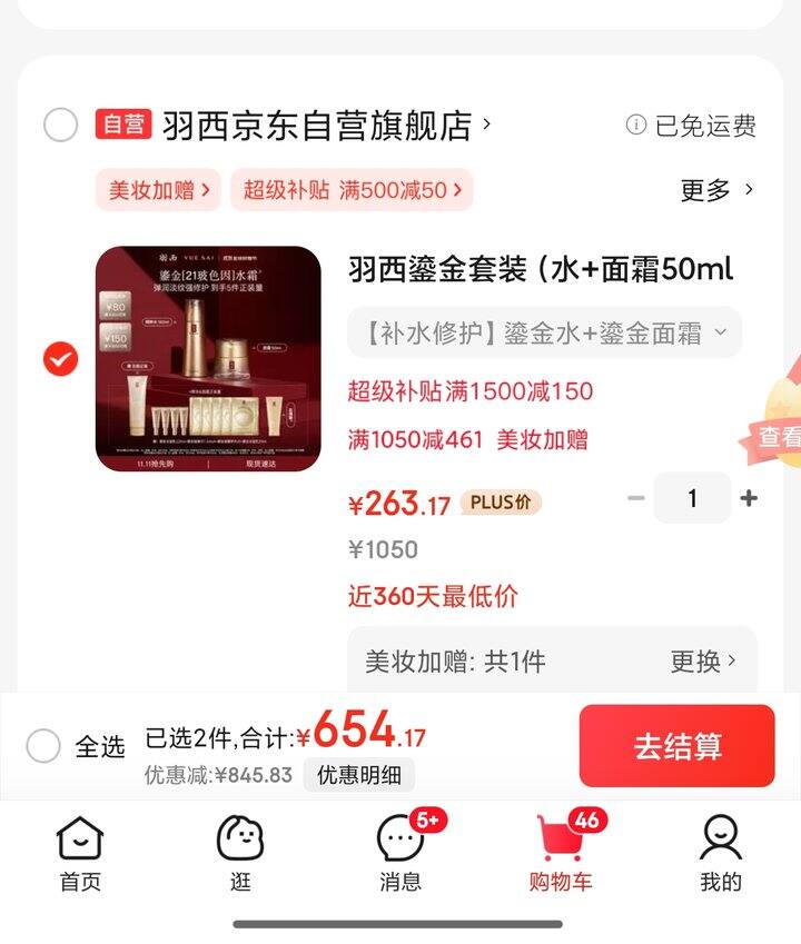 1、羽西鎏金水+面霜50ml+送鎏金精华7.5ml*4+洁面30ml*2:https://u.jd.com///BGwvl4K
