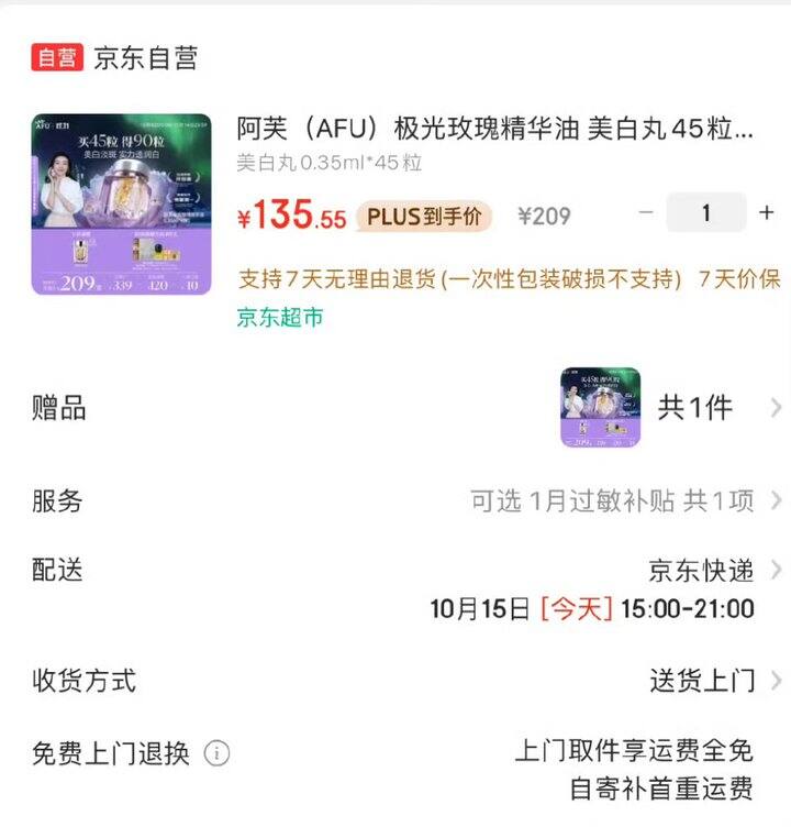 阿芙(AFU)极光玫瑰精华油 美白丸45粒