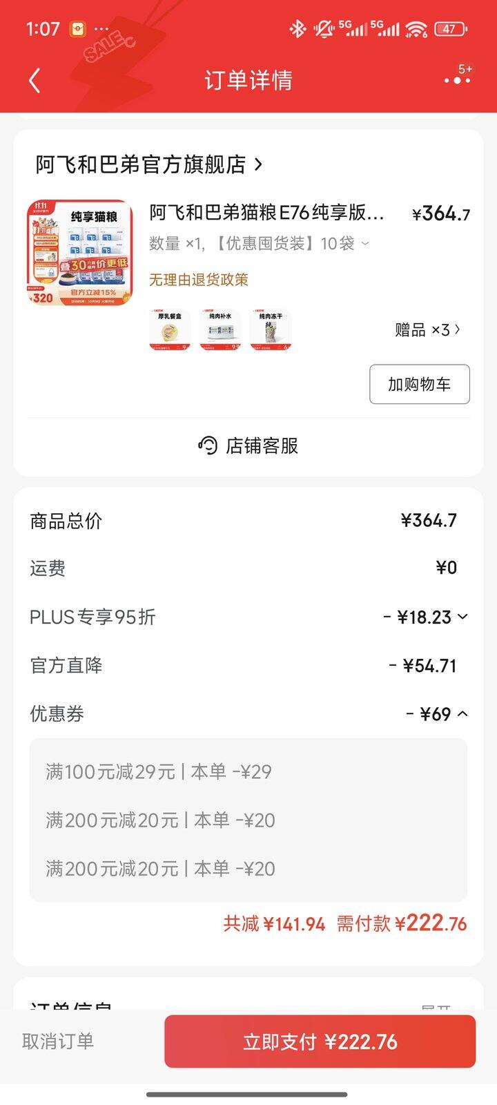 双十一猫车 阿飞与巴弟好价猫车E76纯享版11r每斤