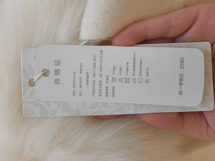 到手手感很厚重,成分90的澳毛,10的羊驼毛,毛毛很顺滑,总体手感不扎人,在商场绝对是6、700以上的水平!
