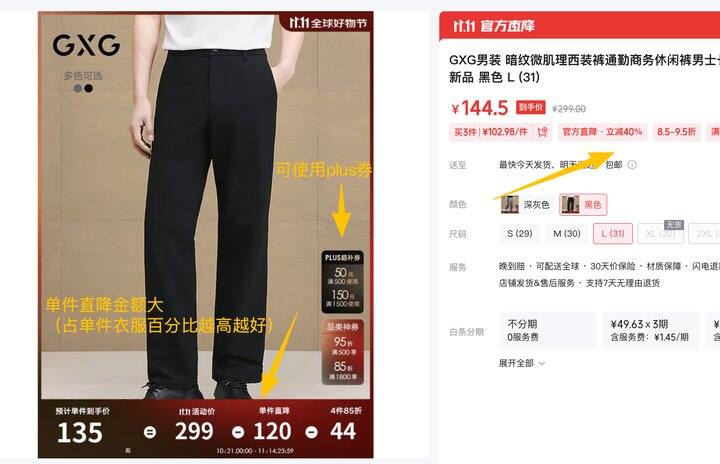 ⬇️挑选要点:选能用plus券、单件直降金额比大的产品