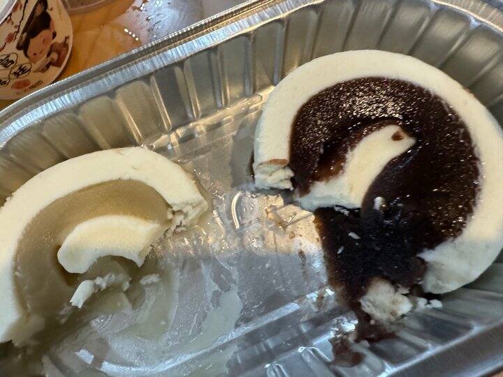 ⬇️双拼奶卷,红豆和白芸豆。好甜,太腻了。
