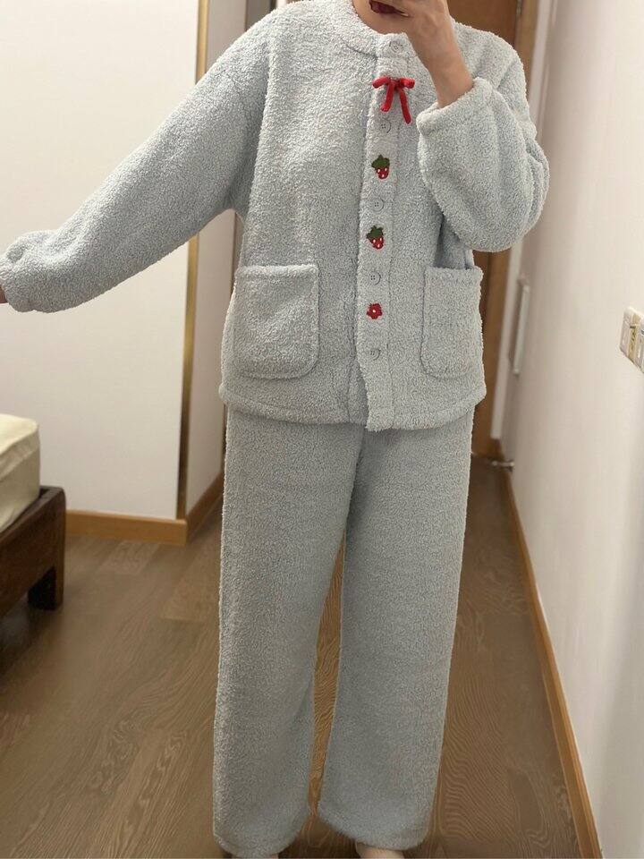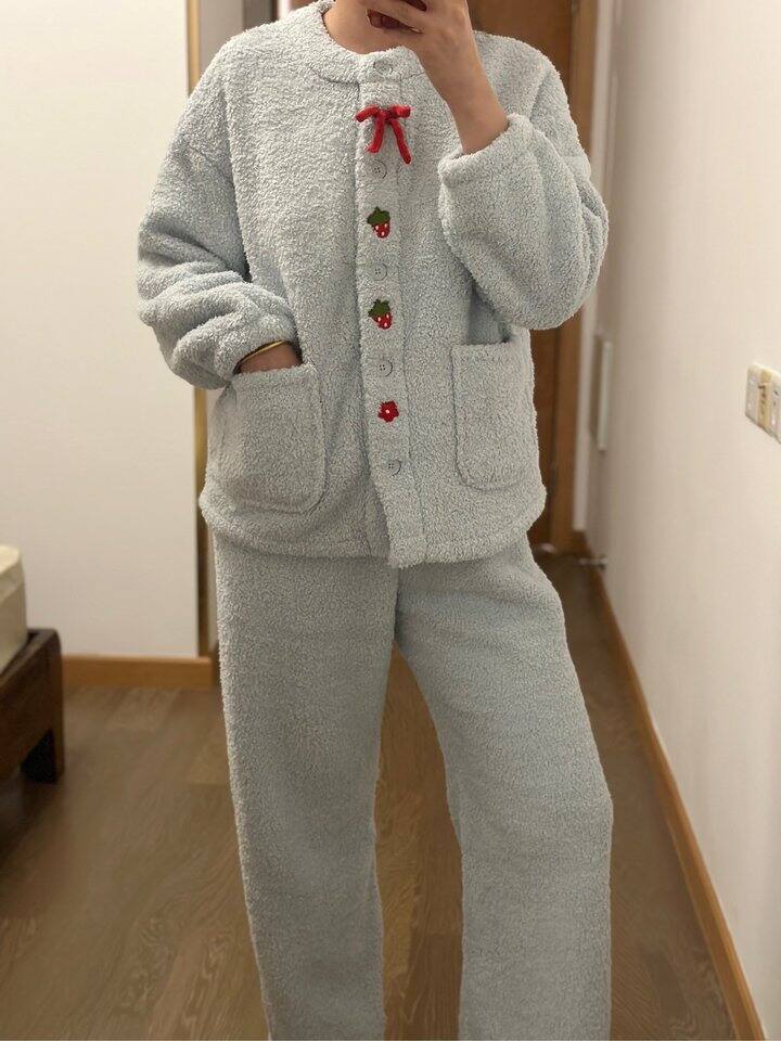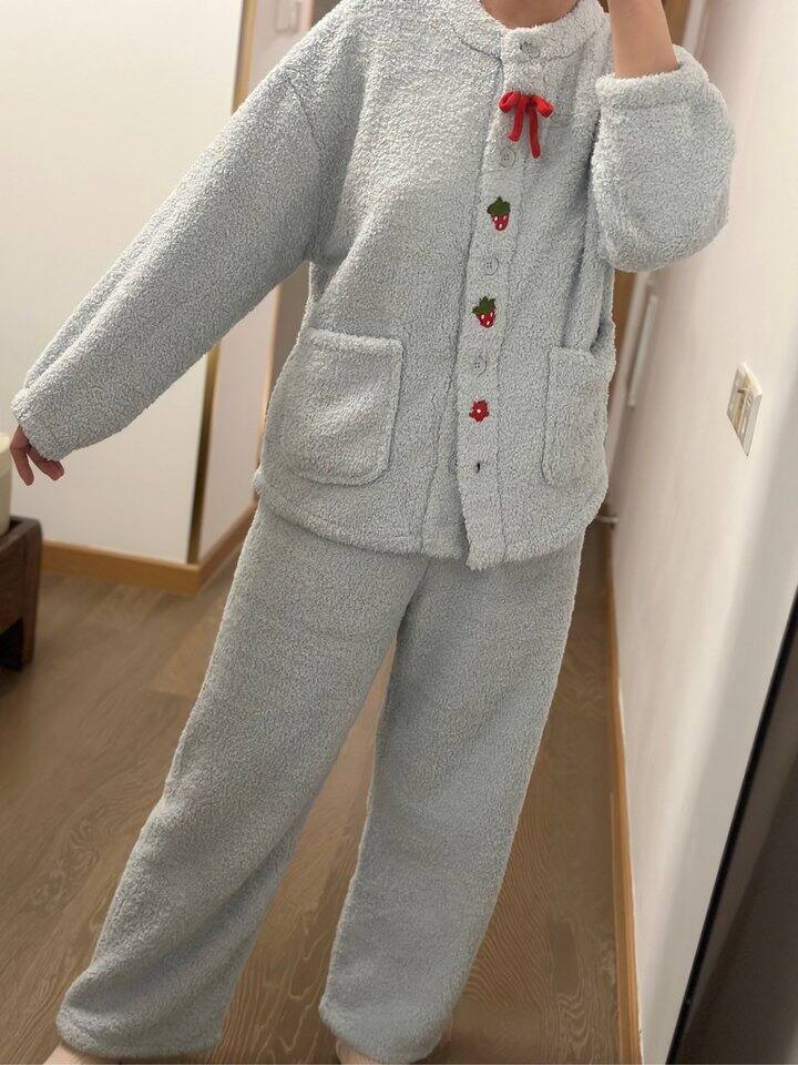 扣子钉得很牢固,口袋又大又深,能装下手机,在家走动时特别方便