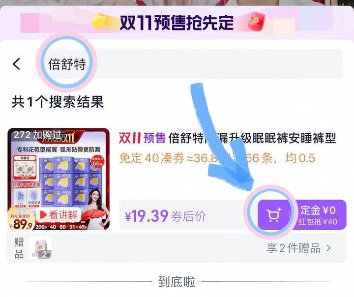 ❹领完之后购物袋打开搜索倍舒特加购1件