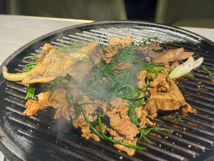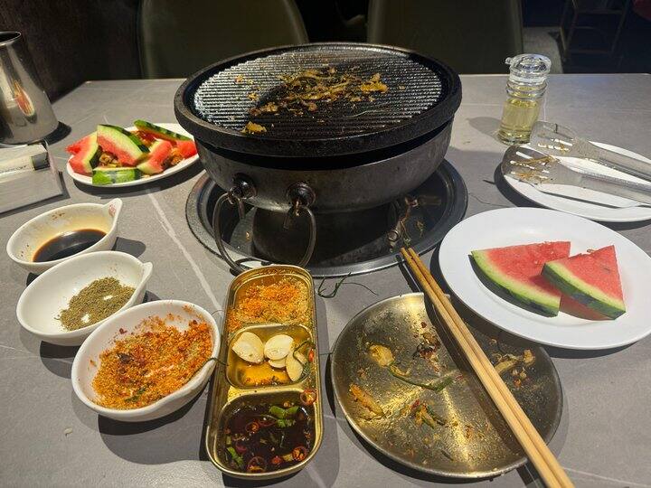 炙子就是那个铁盘,说是老北京传统烤肉方法,