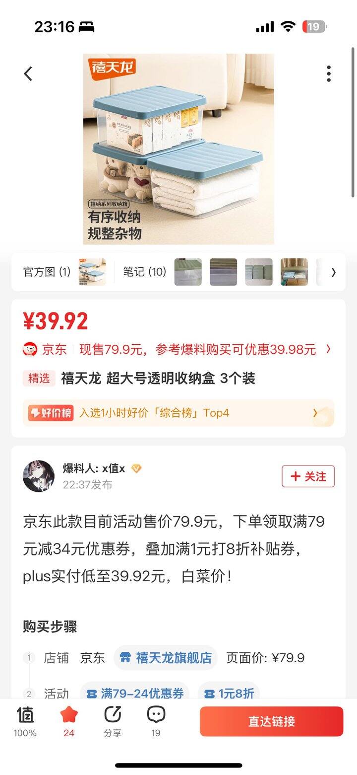 禧天龙收纳箱质量真的巨好,上次买了工具箱,到手很意外,今天到的一个名创优品收纳盒也不错,制造商竟然也是禧天龙。刚刚在什么值得买里又刷到透明收纳箱,下了两单。姐妹们赶紧去买!