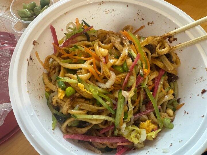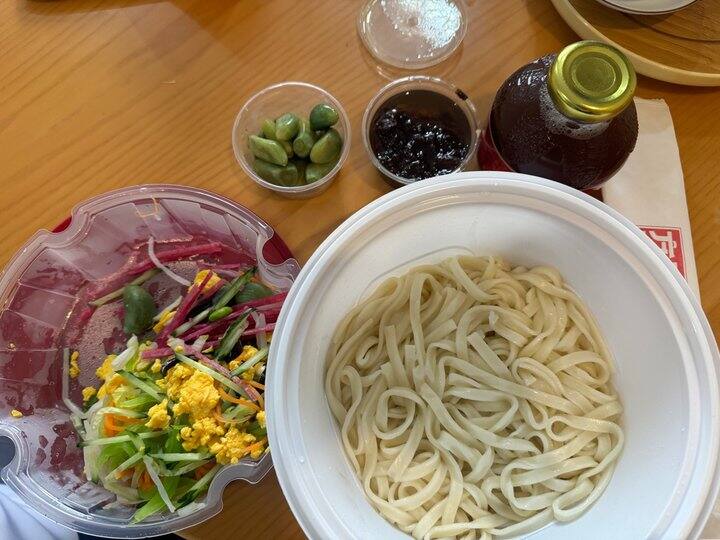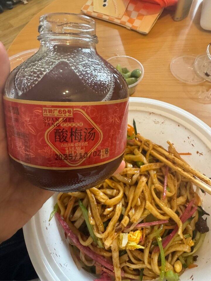 哈哈哈哈哈,我以为炸酱会很咸,结果完全不会,里面的猪肉丁会咸一些刚好做区别。面很劲道,好吃!腊八蒜更是超爱。酸梅汤也很好喝。