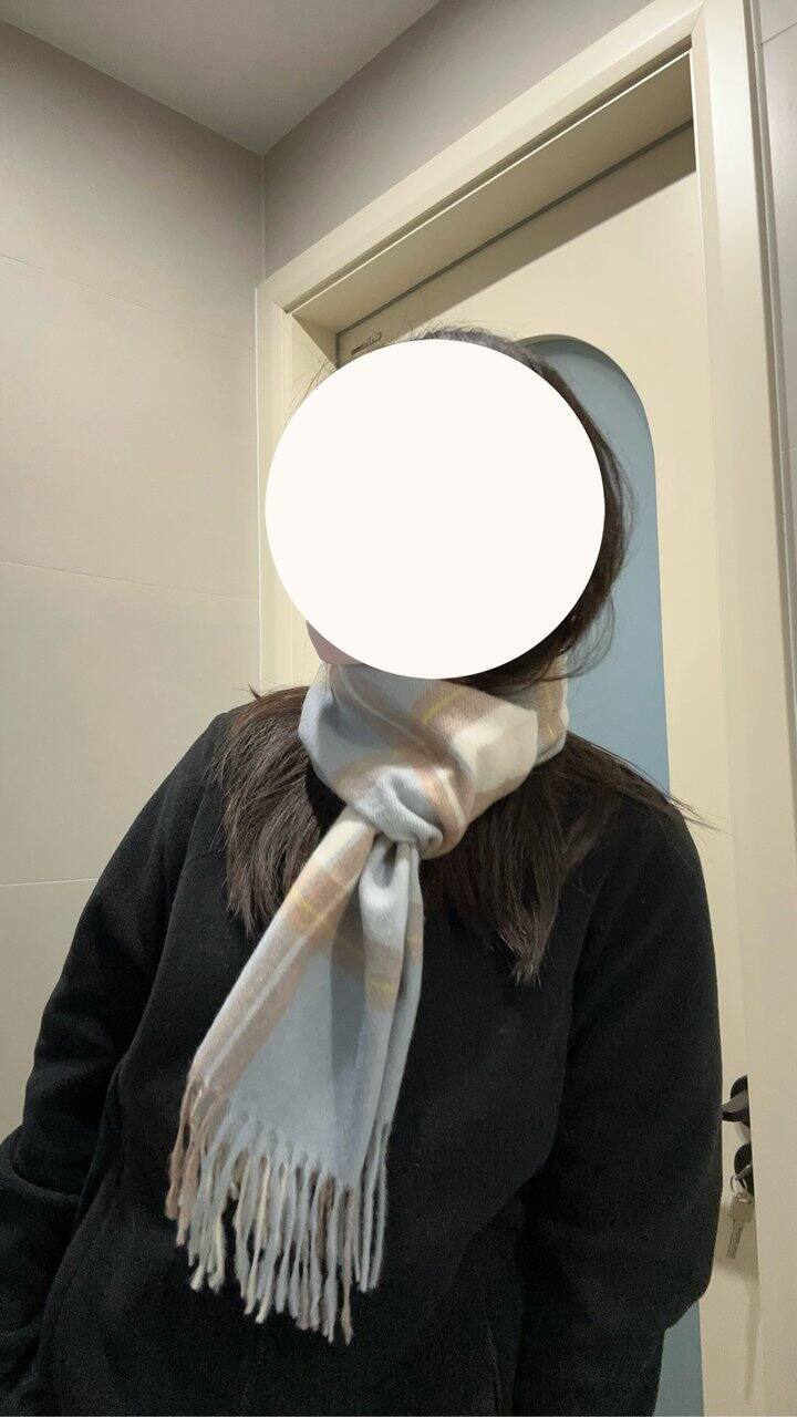 精心挑选的这个颜色特别温柔显气质~我好喜欢!也很百搭,很洋气!贴在脖子上软乎乎的,一点不扎皮肤,冷风根本吹不进来。