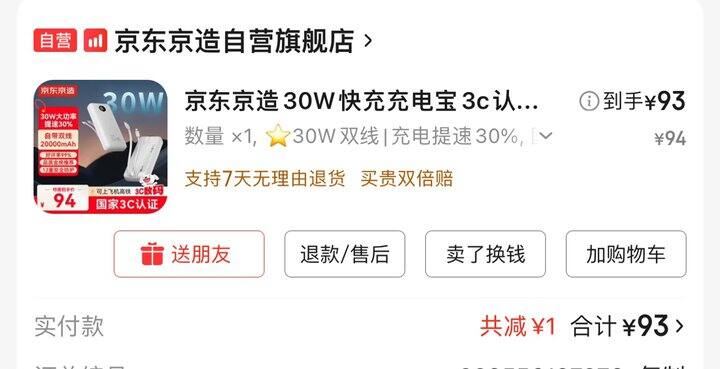 晒单:京造的充电宝