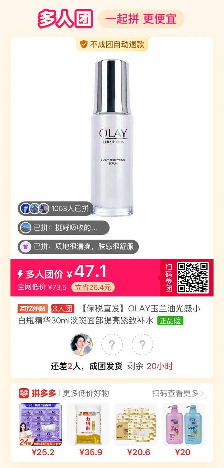 【保税直发】OLAY玉兰油光感小白瓶精华30ml淡斑面部提亮紧致补水