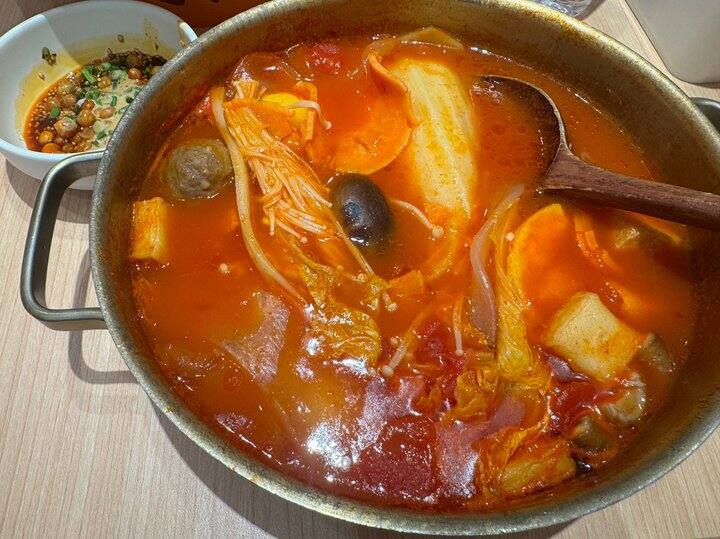 ⬇️庄胜广场负一层的麻辣烫,番茄口味,好吃哎,就是贵,感觉没夹多少料,这些 42,比旁边的小农旋转火锅 38 一位自助还贵。