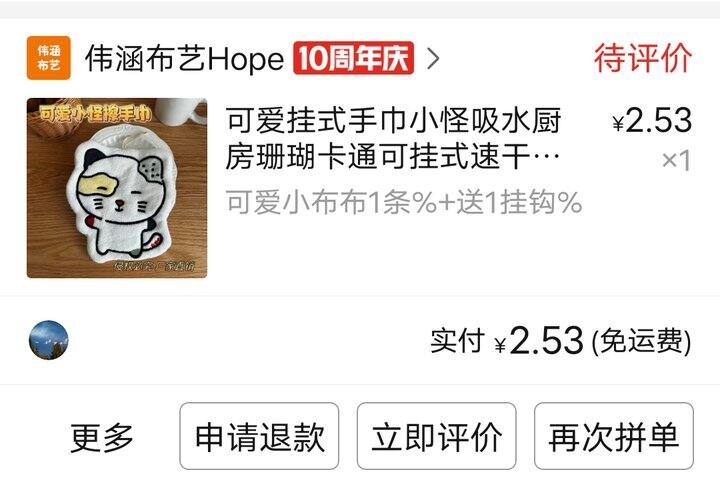 3. 小怪擦手巾太太太可爱了,我买的才两块多,可能是有新客首单优惠什么的,现在点进去是4.9。比较厚实,我租的房子是暗卫,有点不爱干。喜欢在pdd买一些可爱的小玩意。