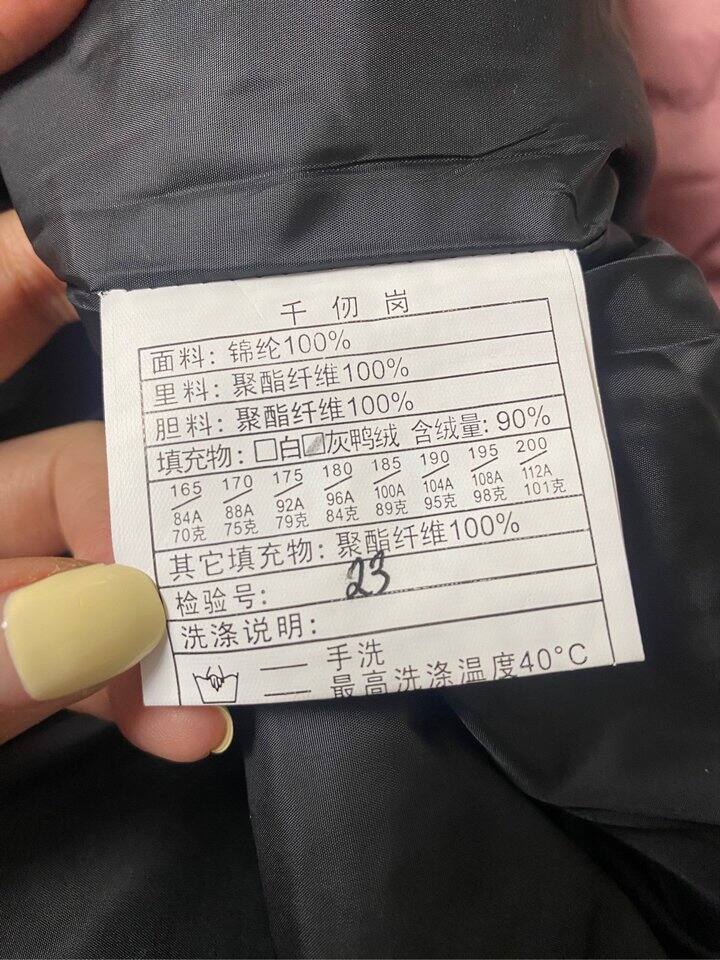 我同时买了千仞岗的连帽做对比,我的码数有70g绒。