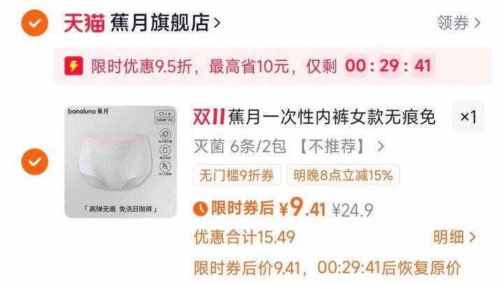 蕉月一次性内裤6条女💰9.9