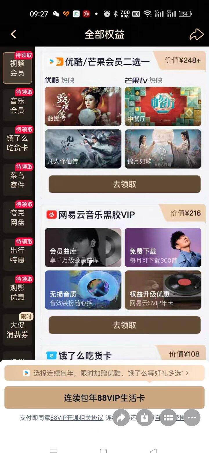 出88vip权益会员,10.16号开的 网易云一年35 饿了么一年 20 闲鱼【闲鱼