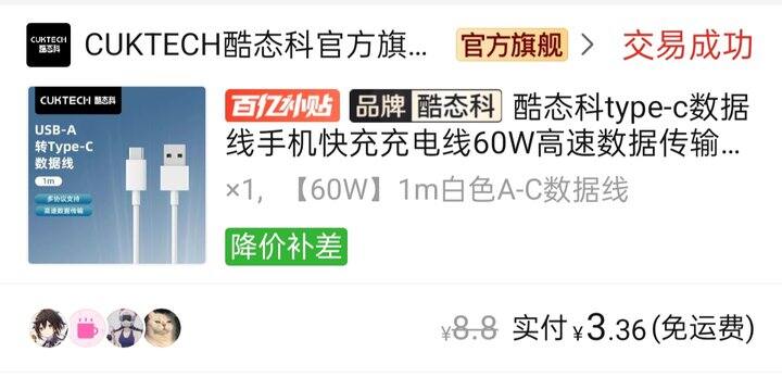 百亿补贴积分兑换5元无门槛避雷,线很细,还不能快充,虚假宣传
