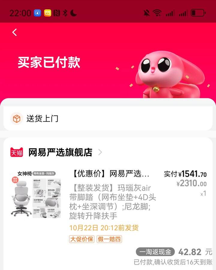 现在的电脑椅用了快十年了,该换了,这个是一淘比较划算,叠加了国补 1310(一淘显示不对),我大概搜了搜感觉还行。