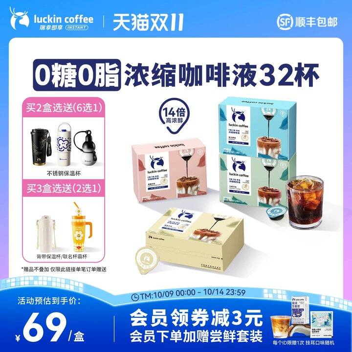 💥实付95💰左右到手2盒64杯瑞幸液➕赠杯子