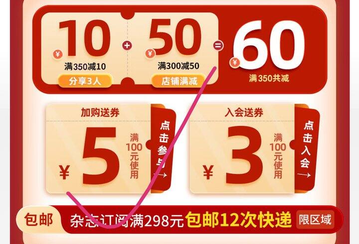 📚杂志铺首页下滑领100-5加购券