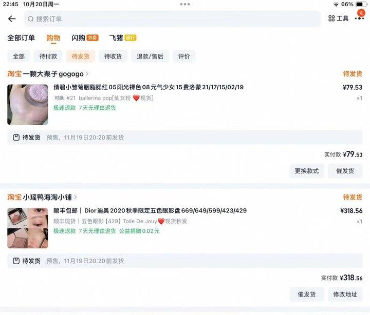 彩妆没有去年价格好,去年买倩碧旗舰店能做到60+,今年c店用了红包价格也一般。