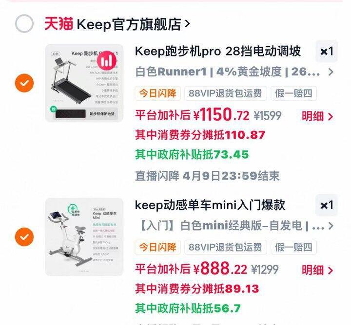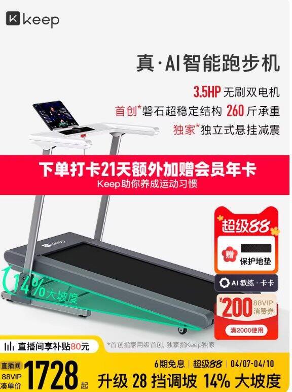 200+https://s.click.taobao.com/HMN7AEnKeep动感单车800+,运动文胸70+筋膜抢140+,买健身器材的可以重点看下 Keep动感单车mini800+(这款之前百亿补贴怎么也要1000左右)
