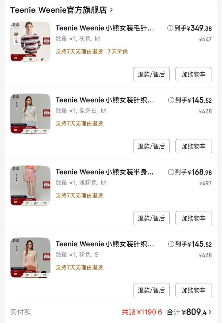 第一件是可机洗扬子纱针织,这个还挺好看的。我夏天买的短袖纯色款也这个价~很喜欢。小熊的可机洗扬子纱不错的~