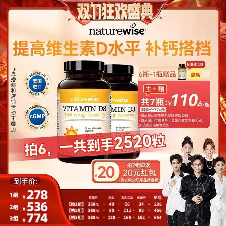 双11拼单阳光瓶5000IU360粒每瓶