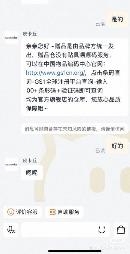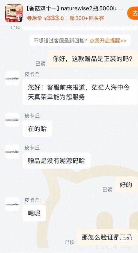 余1瓶赠品可查条形码无溯源码,见P3P4官方客服回复。一瓶95r邮费自理,走🐟