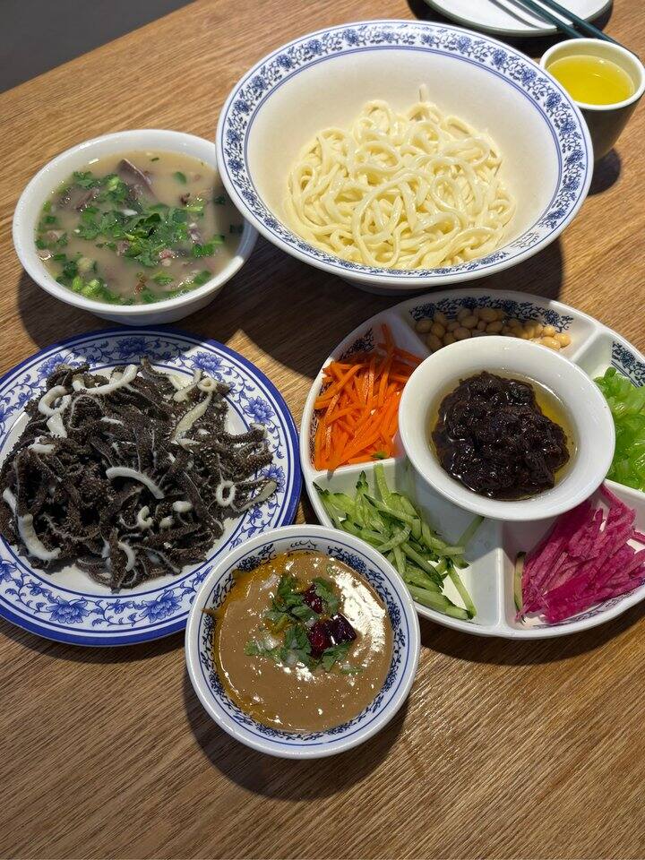 从雍和宫出来在附近的“李记鸦儿”吃午餐,点了炸酱面、乾隆白菜、爆肚、羊肉串、羊杂汤,人均50。