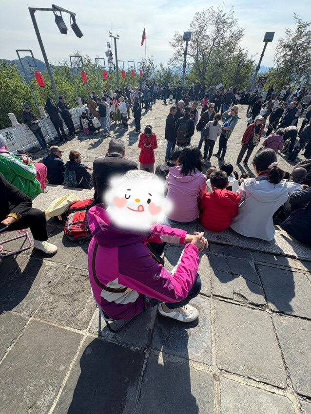 我买的小马扎派上了大用场😊慕田峪外国人占一半,香水味巨浓,我要被熏晕了😷