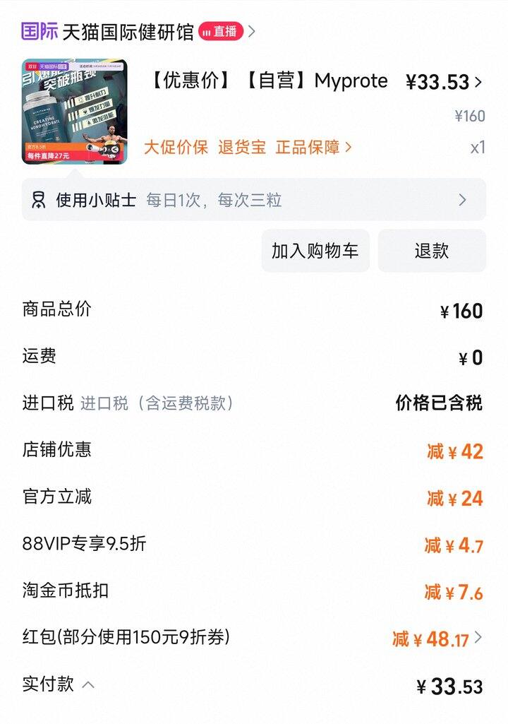 蛋white粉下单后会返40块钱的红包,然后就可以用来买肌酸