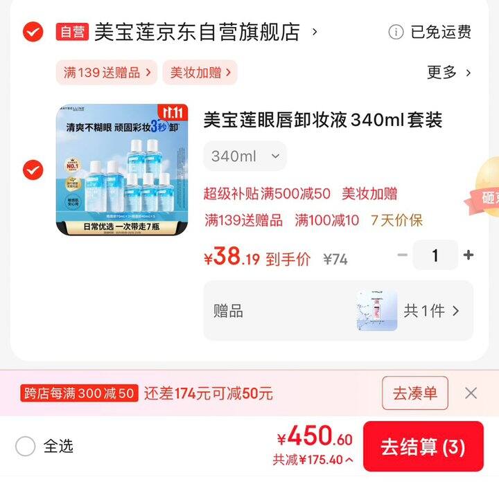 美宝莲眼唇卸妆液340ml套装(70ml*2 40ml*5)