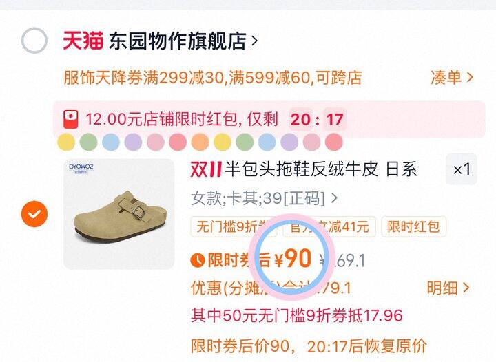 ❹看图从淘金币加购抵扣21.5r