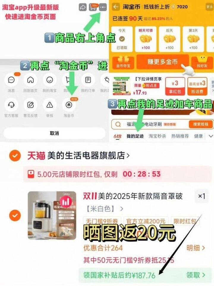 拍下187,HP送20=167💰右上角进“淘金币”拍~美的多功能破壁机