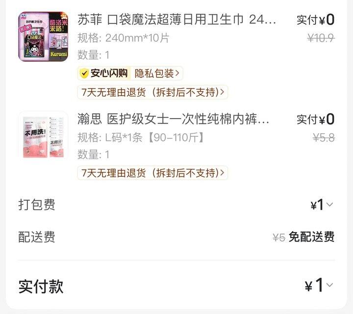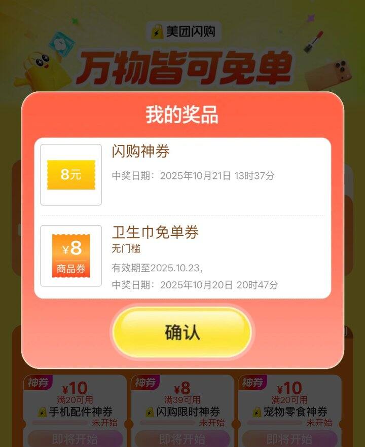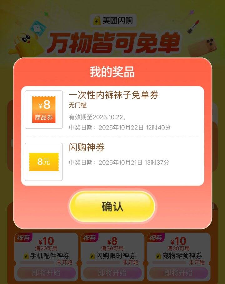 美团闪购抽奖有机会0薅卫生巾、一次性内裤