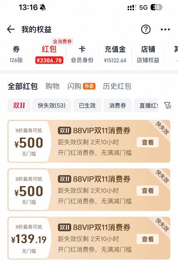 1️⃣你现在手头上有上限可以给500减50的无门槛消费券和给1500减150的无门槛消费券两张