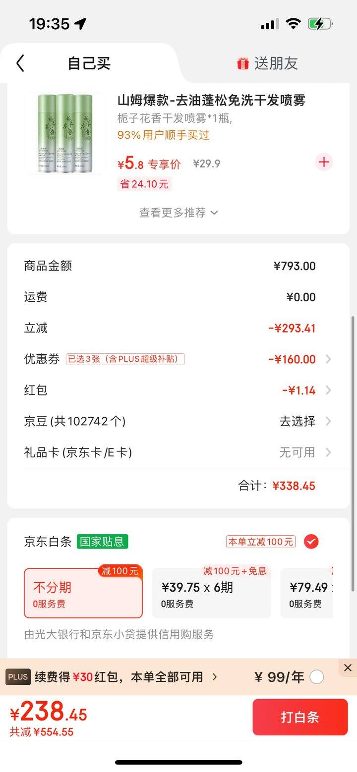 ps:如果有白天领的300-10全品可叠,还有膨胀出的300-30plus卷也可叠,到手更低