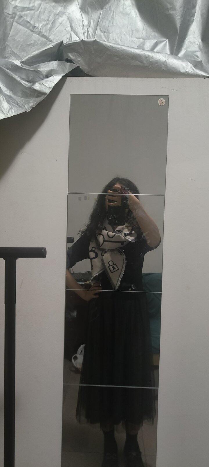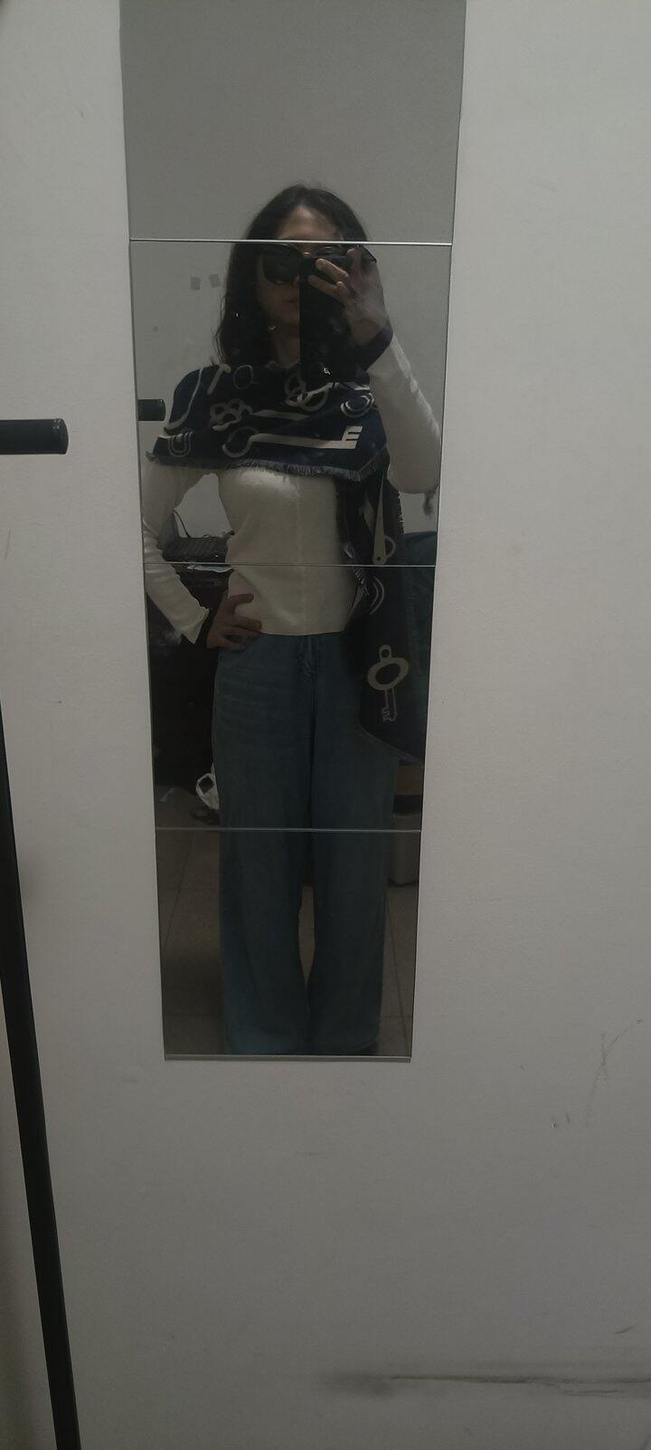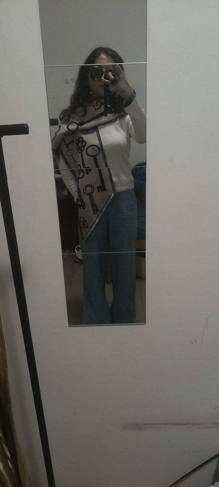 本来想着p一下加个滤镜或者抠个图啥的,但想想一是这样看不出围巾本身的细节,二是也看不出围巾的百搭和对穿着的加分,三是想着下周带大衣又出太阳了可以再返图晒单,所以就请大家忽略杂乱的背景和潦草的本人,专注欣赏美貌的围巾吧!!!