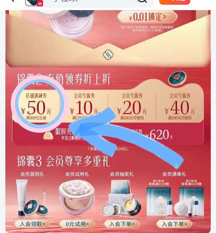 ❹去店铺首页领300-50店铺券