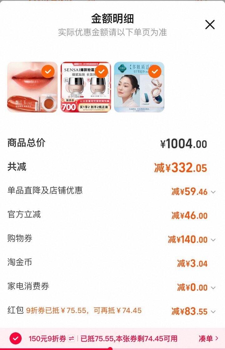 ❷领1000-140美妆券