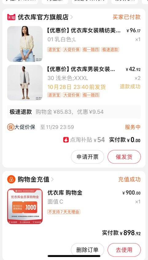 3倍补:品很少,基本上服装和彩妆,很努力凑单叠加了购物金优惠以后,86带走优衣库199的美利奴针织衫。