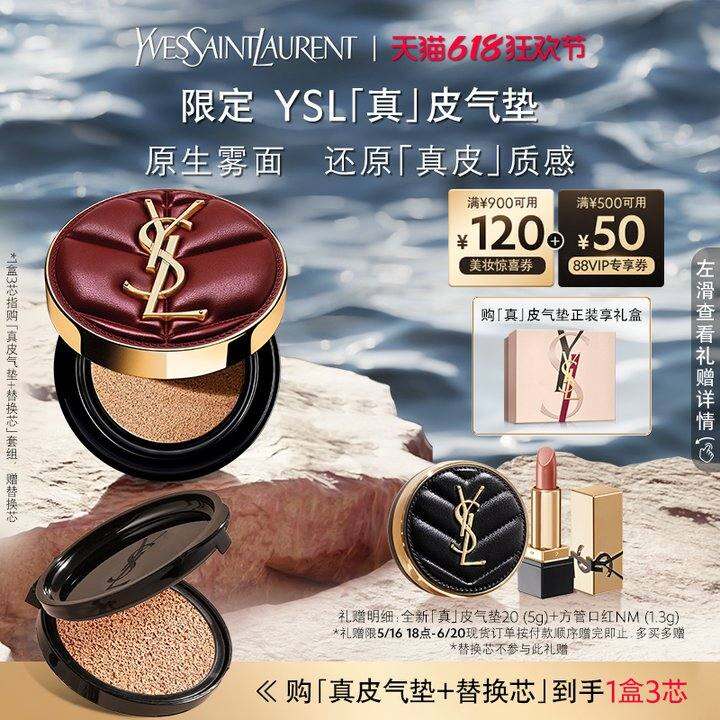 【618现货】YSL圣罗兰全新真皮气垫 粉底液持久遮瑕化妆品礼物女