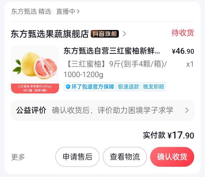 不得不夸一下东方甄选的蜜柚,是真好吃呀。果肉水分多,大概八九分甜,几乎不酸,超级好吃。今年买了五六单柚子,都没有这家好吃😋