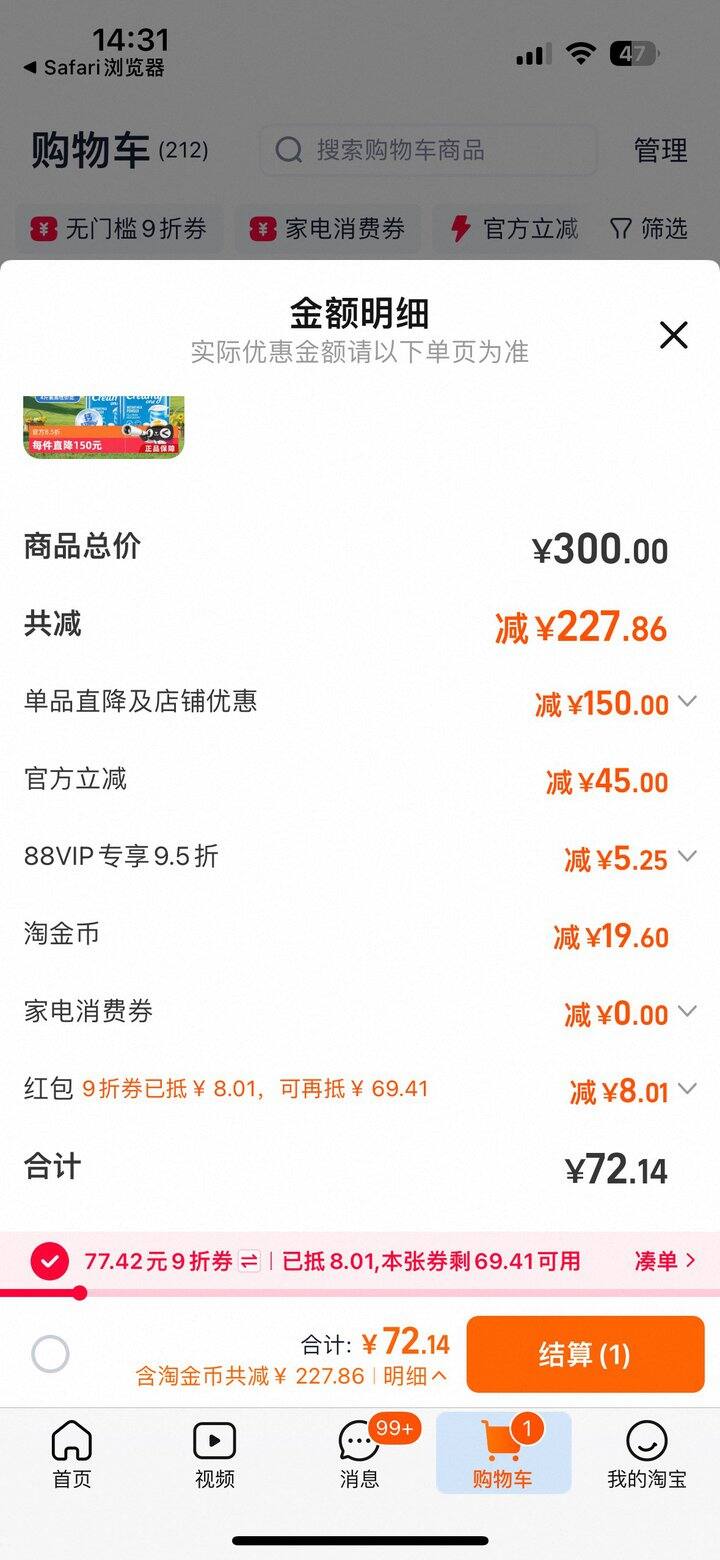 淘金币+九折消费券