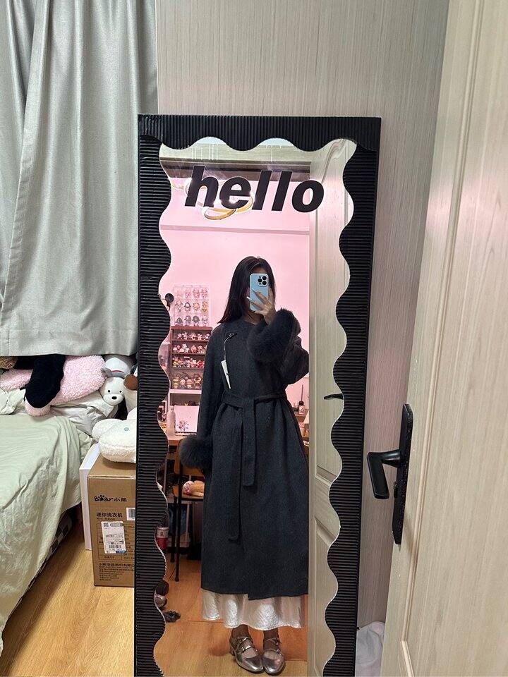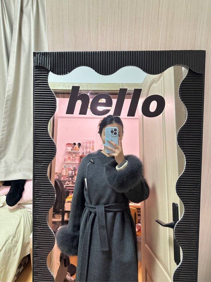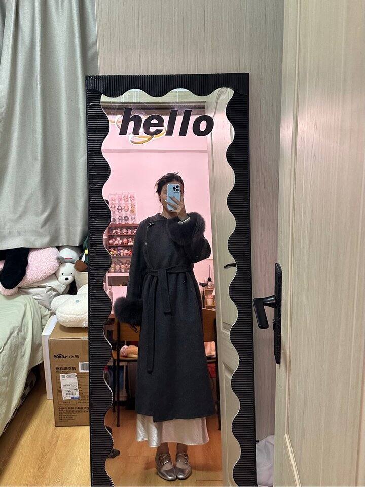 我比较纠结留不留,因为对我来说有点大,肩部空荡荡的,准备买个毛领围脖搭一搭试试看