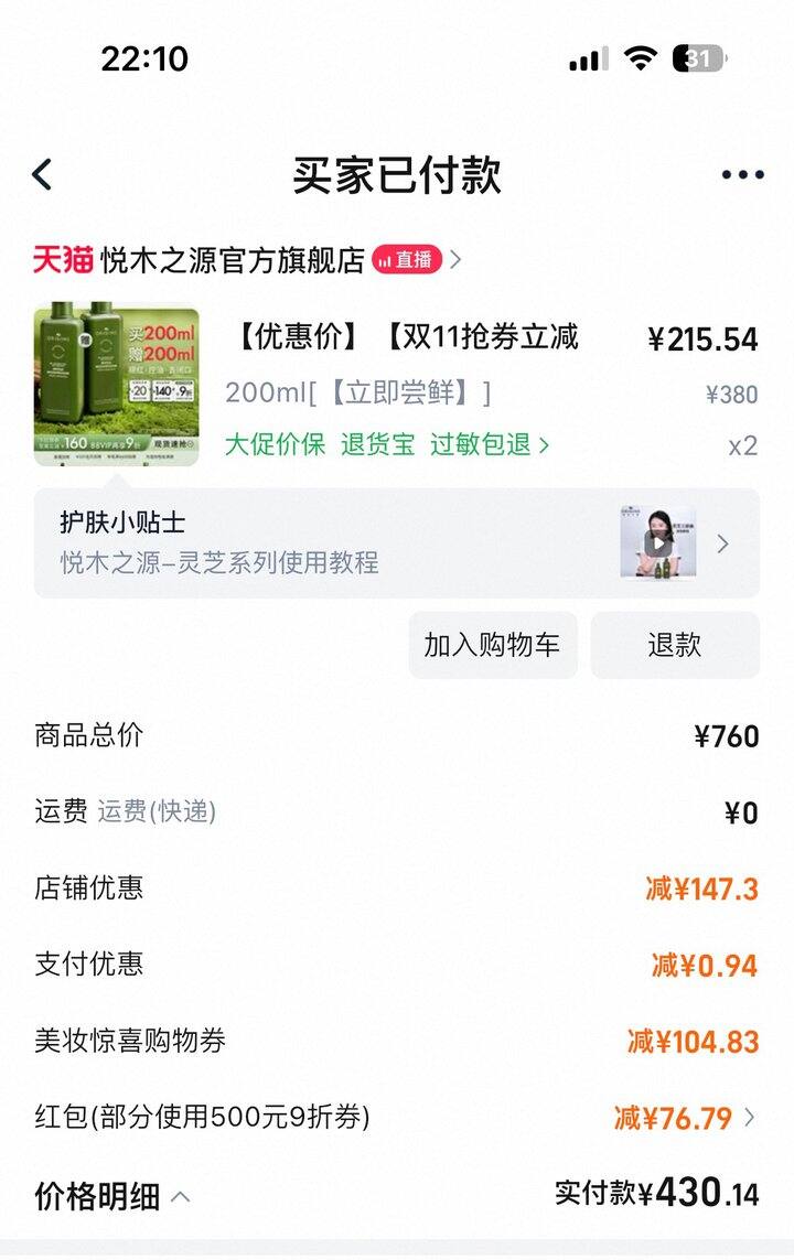 一份是2瓶,领券拍2或者店里凑其他商品满700,加入店铺会员领700-100,凑美妆券1000-140或者2000-280,叠加购物车店铺限时折扣。