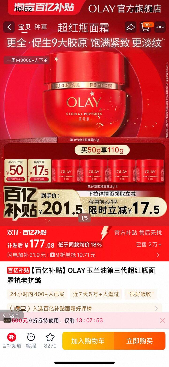 🍑百亿补贴玉兰油超红瓶177拿下